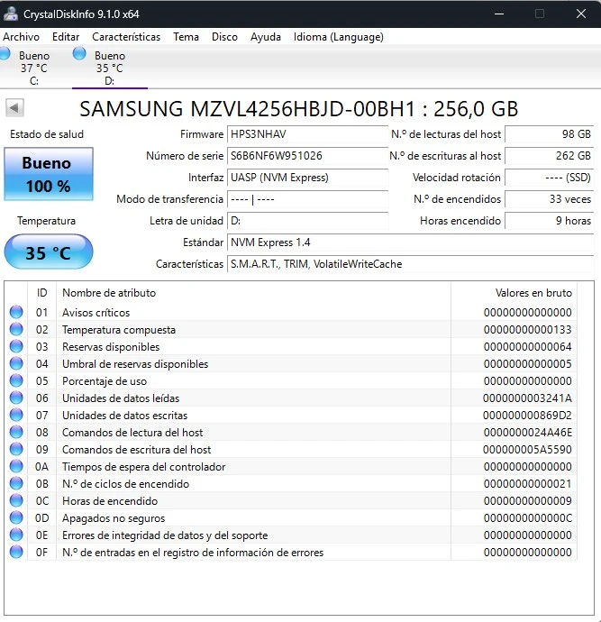 Capacidad : 256 GB
